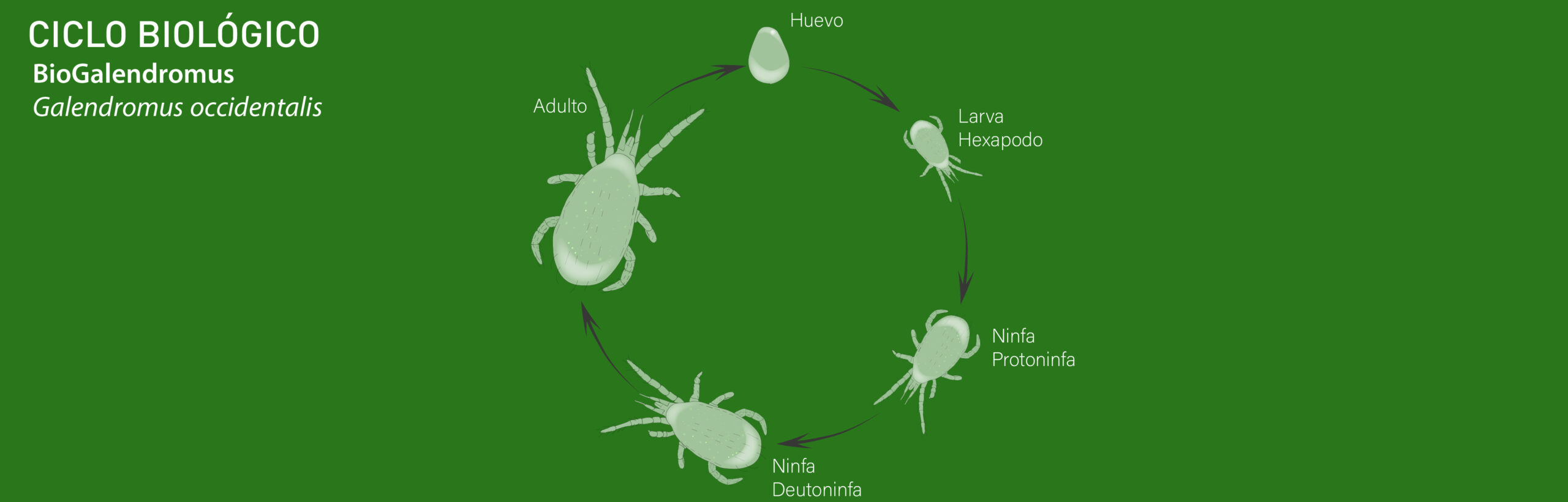 BioGalendromus, también conocido como arañita depredadora occidental, se destaca por su capacidad de prosperar y controlar los ácaros y arañitas en condiciones muy secas y cálidas.