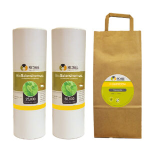 - BioGalendromus se envía en cajas aireadas. El embalaje debe mantenerse intacto hasta su colocación en el invernadero o en el campo.